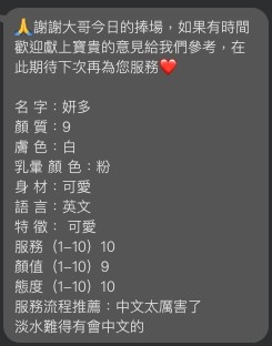 馬上約她 建議客戶提前一小時預約,臨時預約可能會遇到喜歡的女孩忙碌中 Line ID : akf96