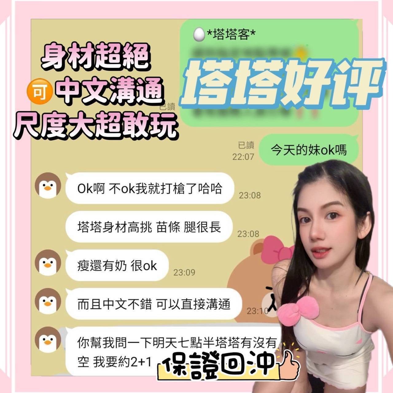 馬上約她 建議客戶提前一小時預約,臨時預約可能會遇到喜歡的女孩忙碌中 Line ID : akf96