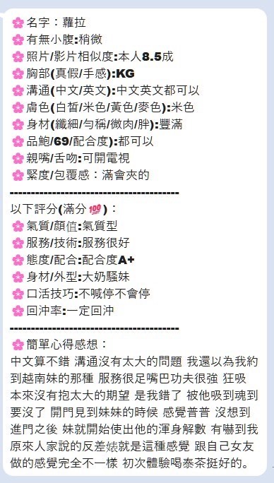(snapping fingers)服務項目:調情共浴/愛撫調情/無套吹/深喉嚨/毒龍/舔蛋/小親親/LG/屁推/臀推/69/品鮑/奶炮/胸推/潮吹(依貴賓技術而定)/全身紓壓/射後清槍(口爆適用)/白人/入珠